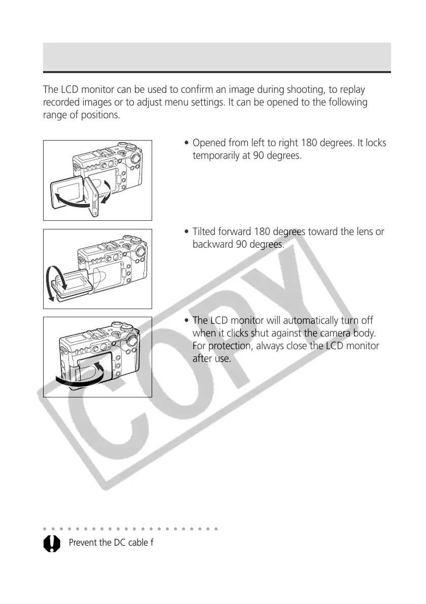Prevent the DC cable from touching the LCD monitor when the camera is connected