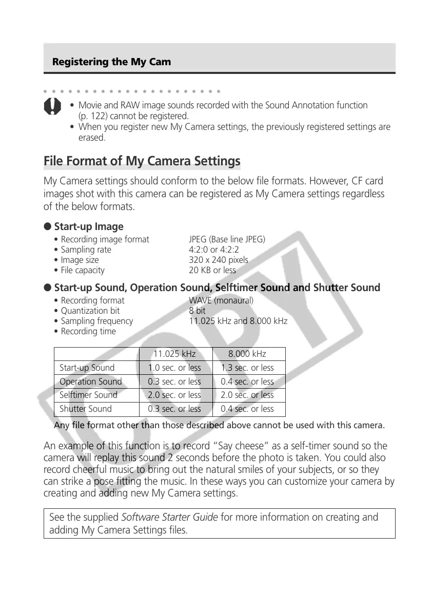 images shot with this camera can be registered as My Camera settings regardless