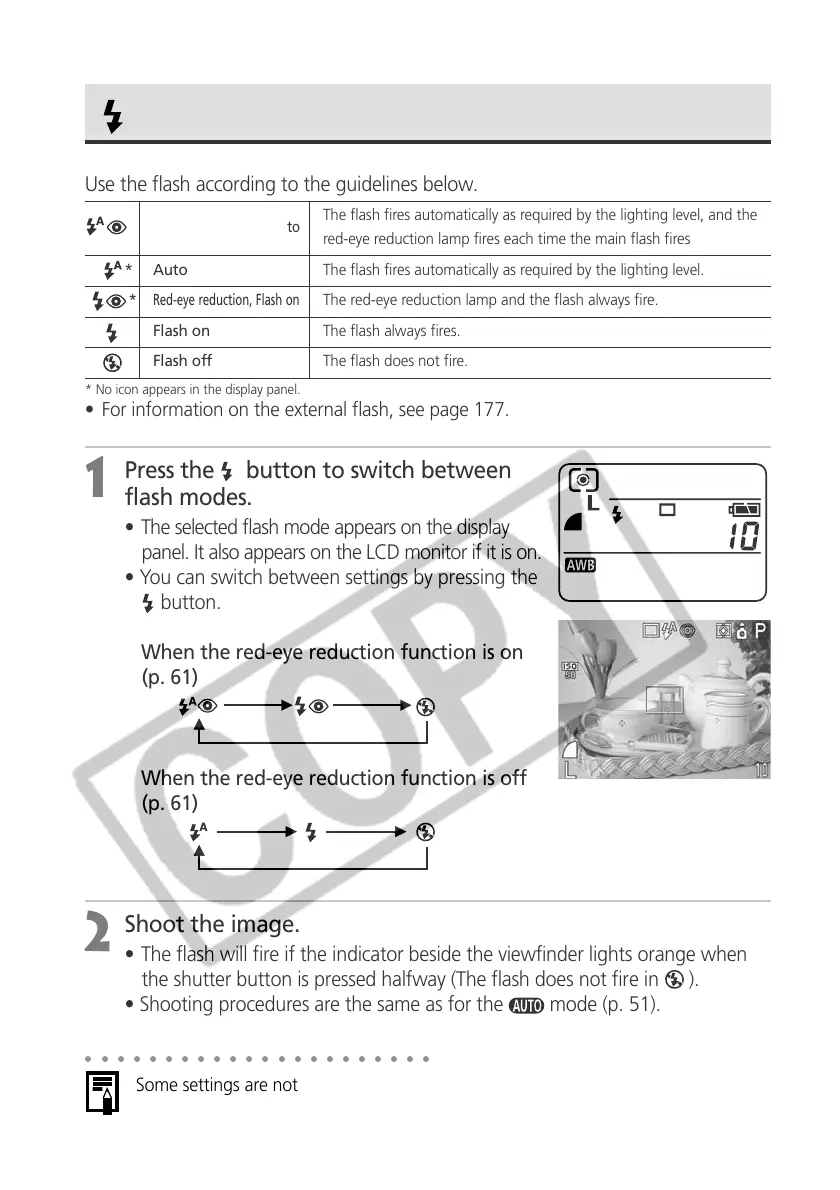 * Auto The flash fires automatically as required by the lighting level.