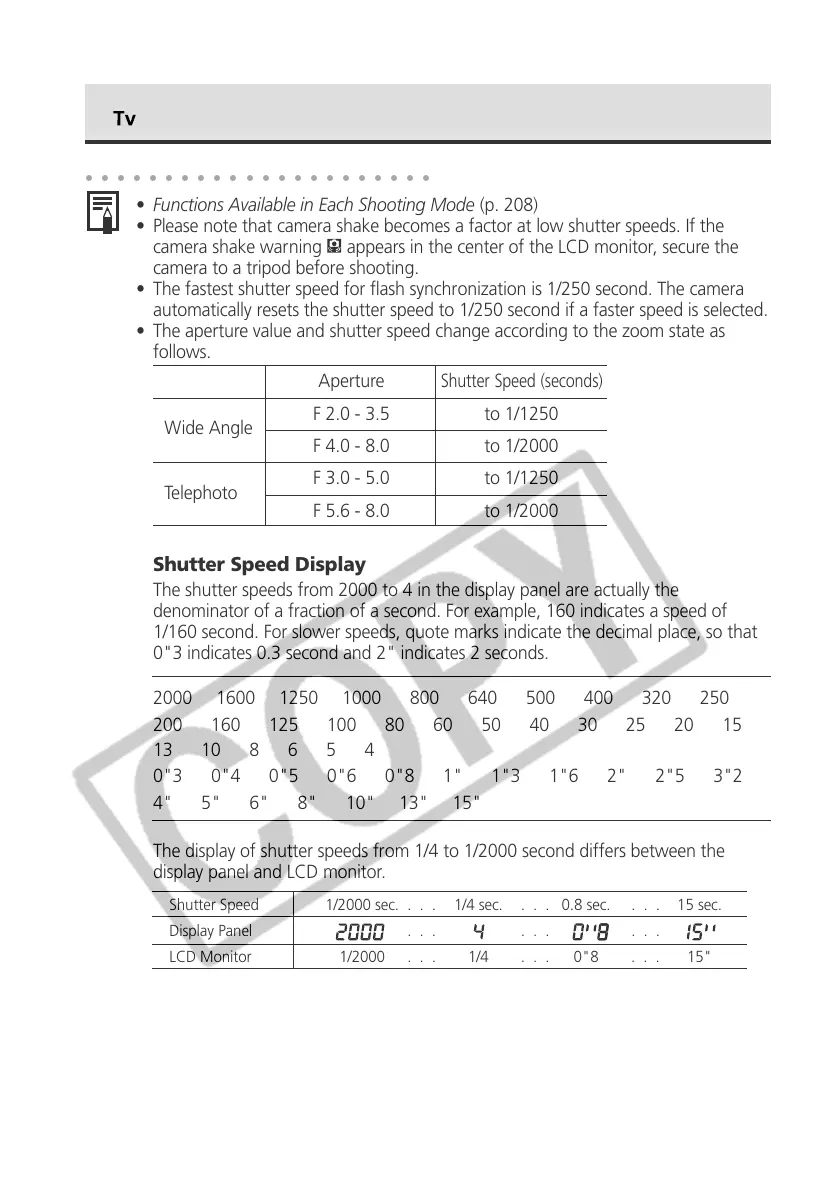 Shutter Speed 1/2000 sec. . . . 1/4 sec. . . . 0.8 sec. . . . 15 sec.