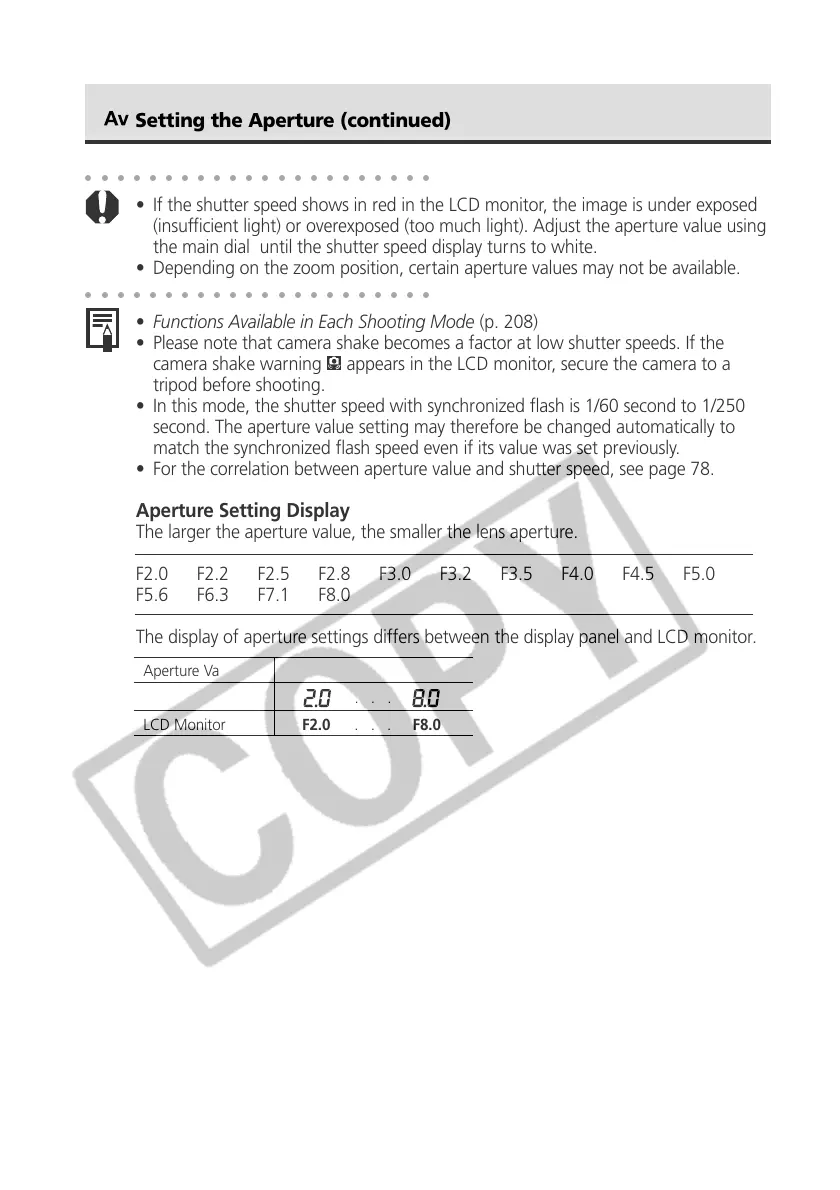 F2.0 F2.2 F2.5 F2.8 F3.0 F3.2 F3.5 F4.0 F4.5 F5.0
