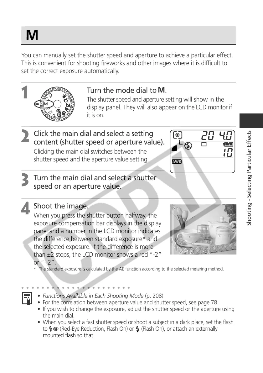 • If you wish to change the exposure, adjust the shutter speed or the aperture using