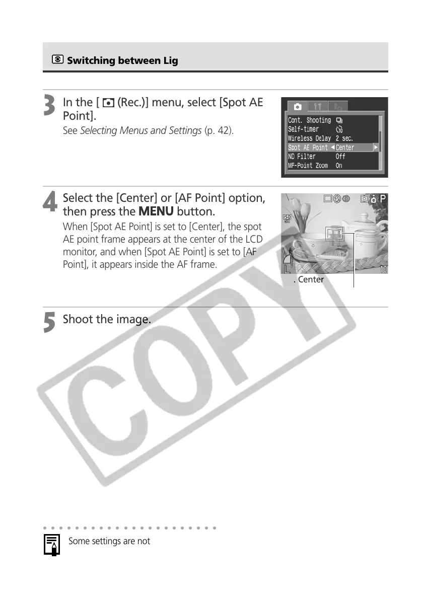 In the [ (Rec.)] menu, select [Spot AE