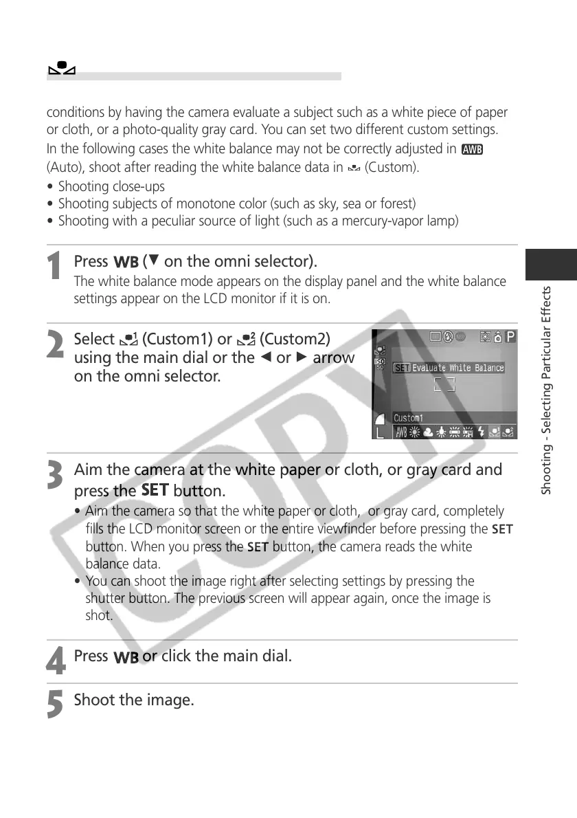 or cloth, or a photo-quality gray card. You can set two different custom settings.