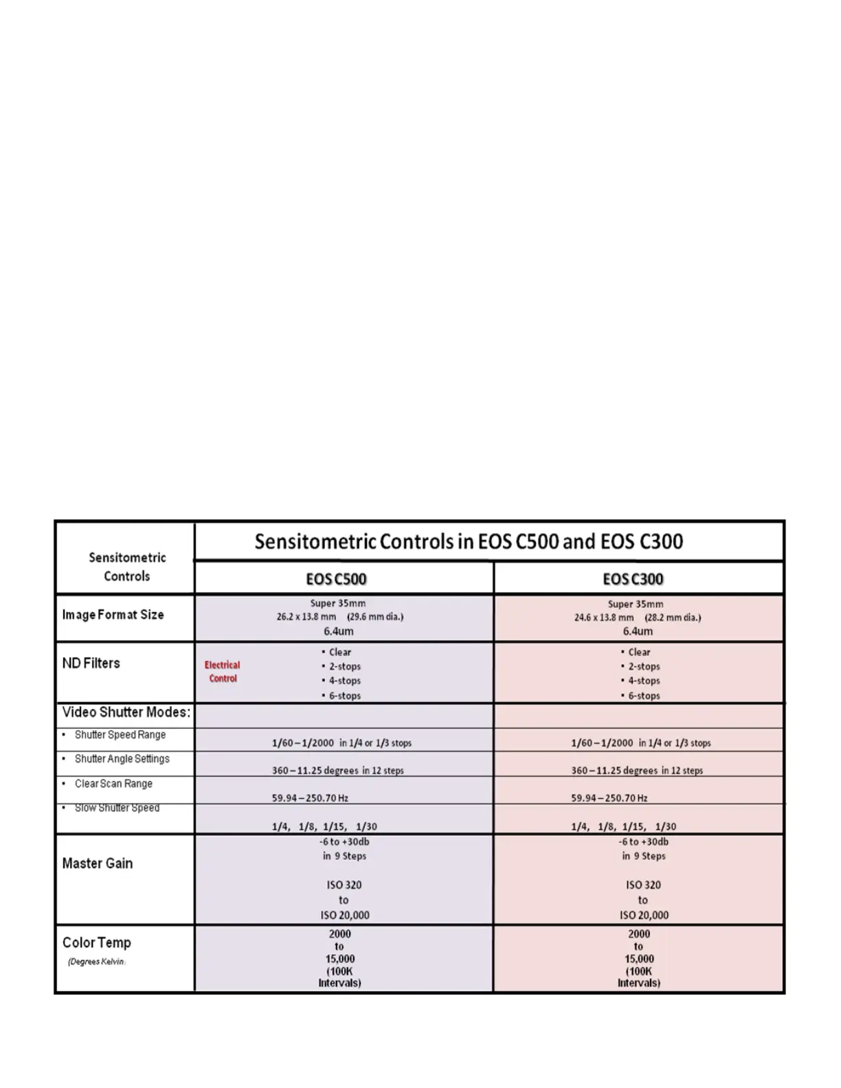 This paper is intended to focus on the important differences between the EOS C500 and the EOS C300 –