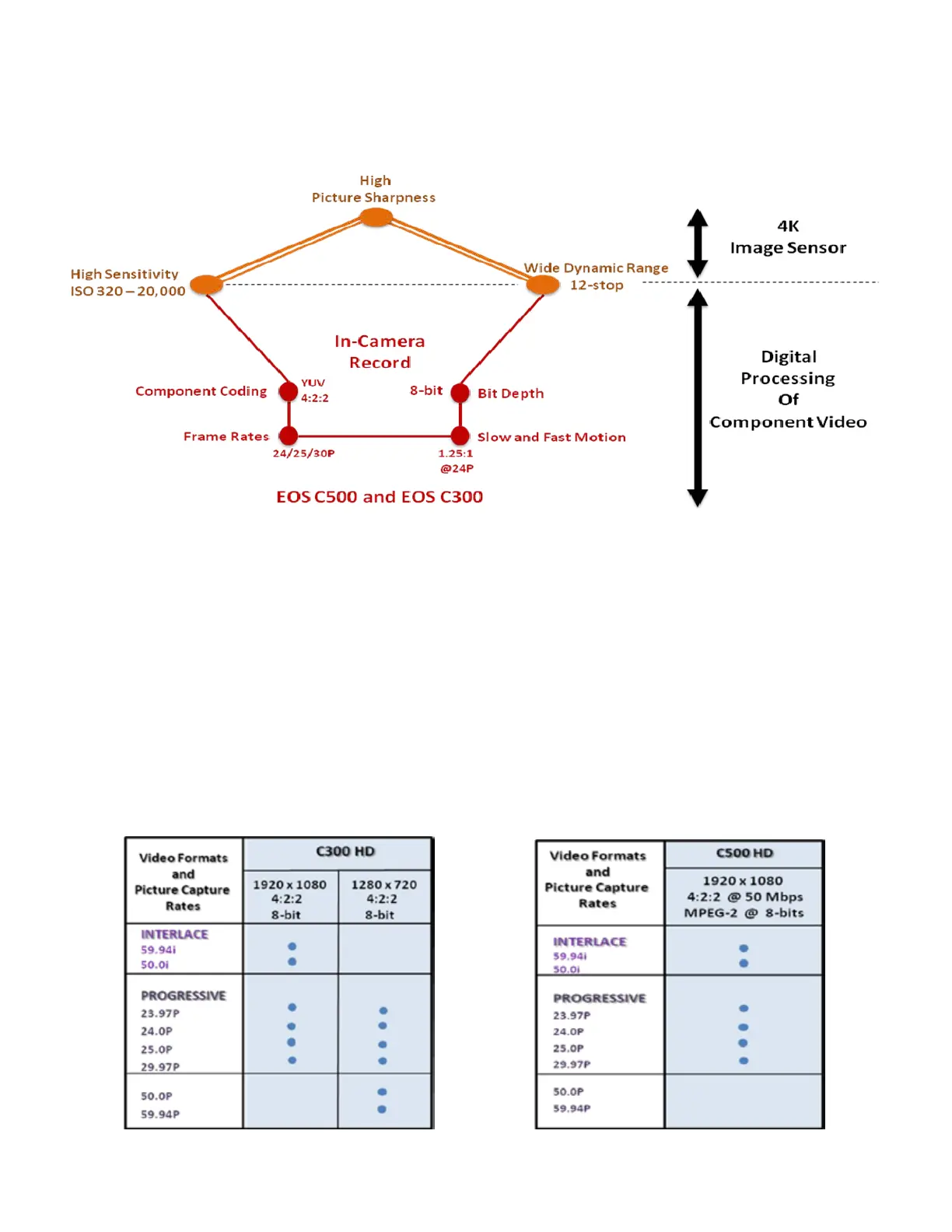 Figure 3 Summarizing the salient features of the in-camera recording within the C500 and C300