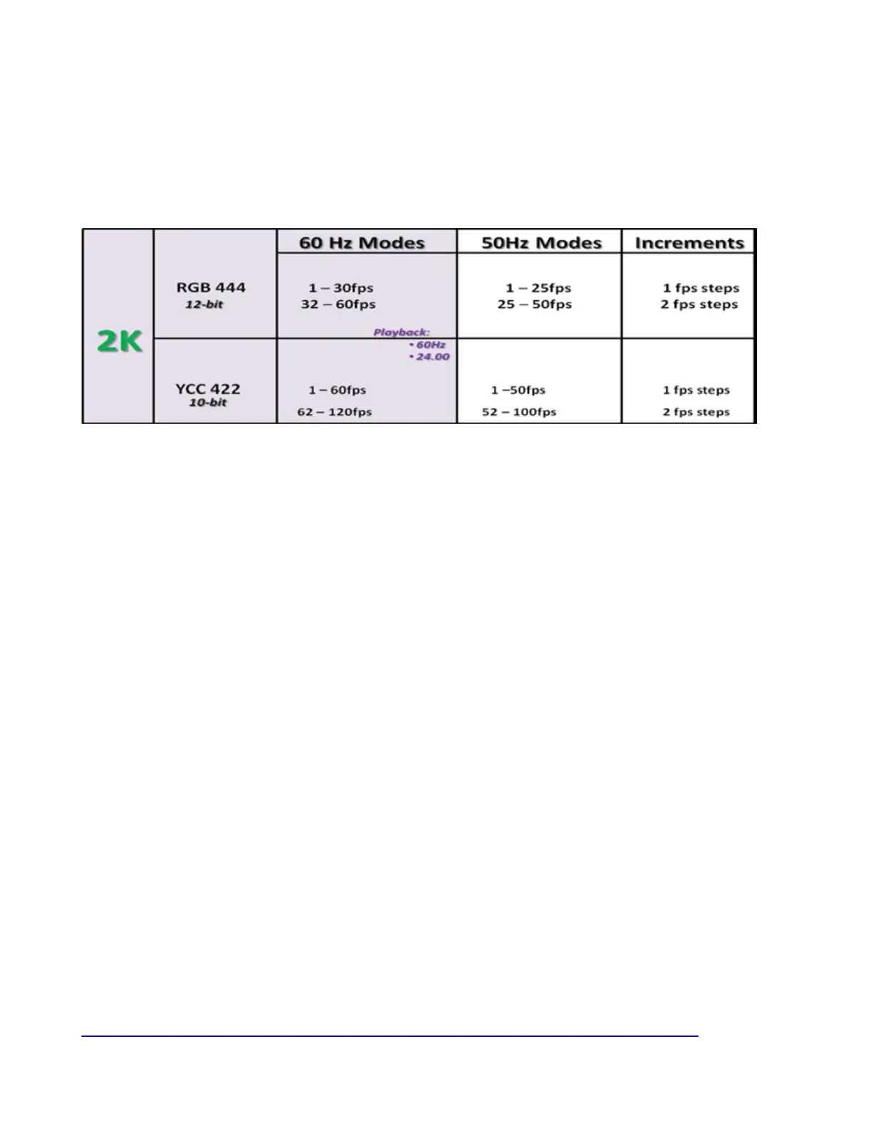 In addition to the standardized frame rates shown in Table 3, the C500 can be switched into a variable