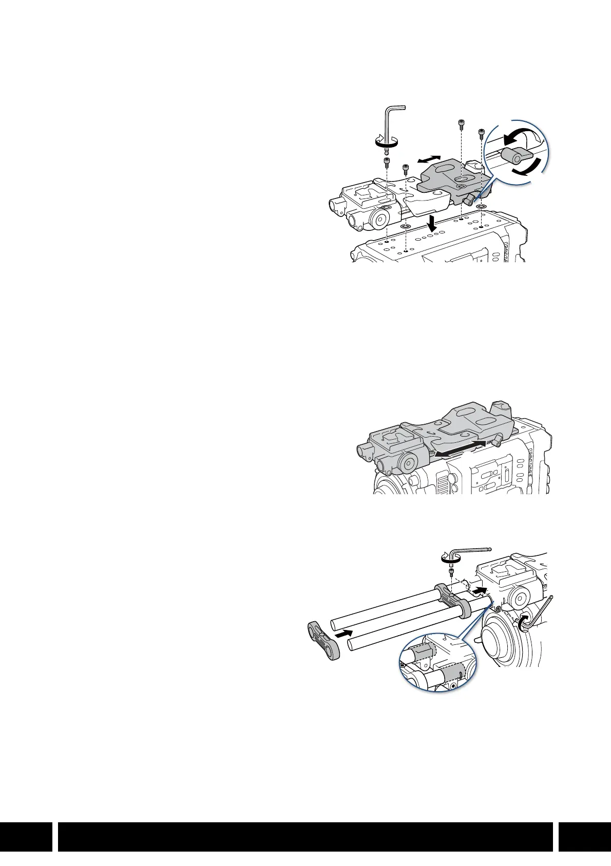 6. Fixez l’appui en bandoulière à la base de la caméra (햵) et utilisez la clé hexagonale pour les vis