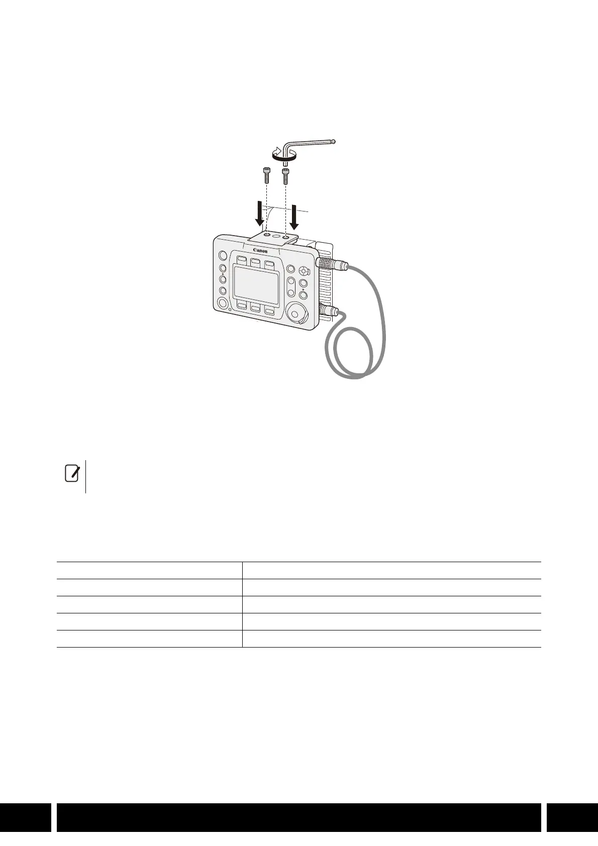 カメラ本体に取り付ける場合は、1/4 インチボルト用六角レンチを使用して2 個の六角穴付きボルト(付