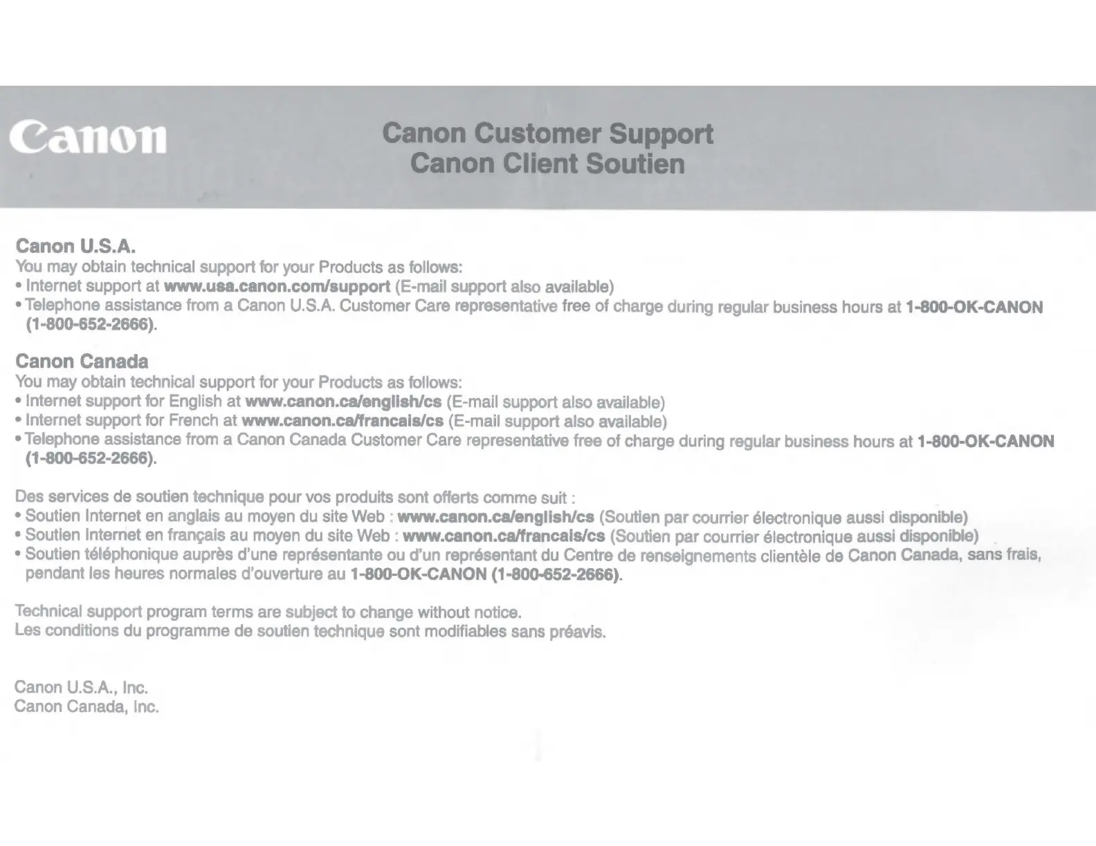 representative free of charge during regular business hours at 1-800-OK-CANON