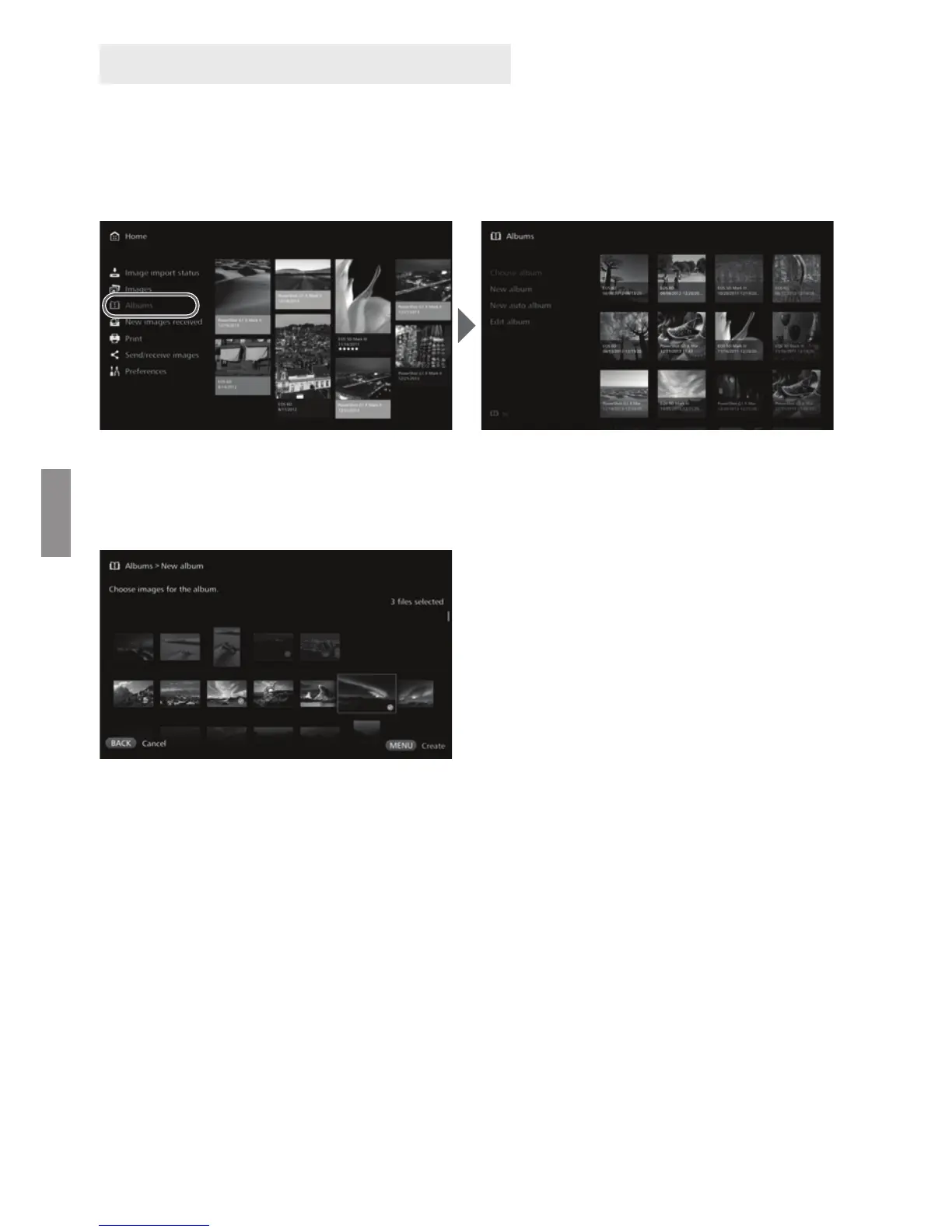 To view, create, or edit an album, select [Albums] on the Home screen.