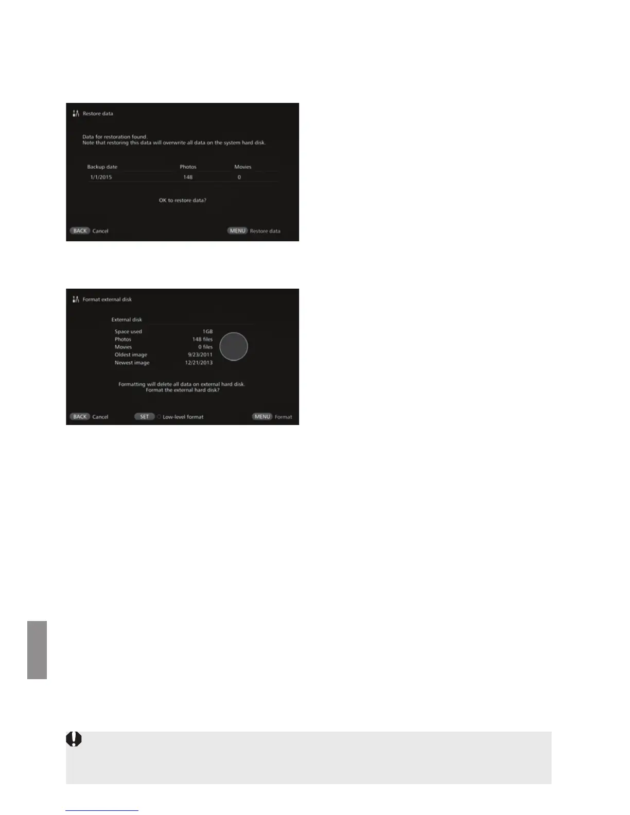 Delete all the data recorded on an external hard disk to format it.