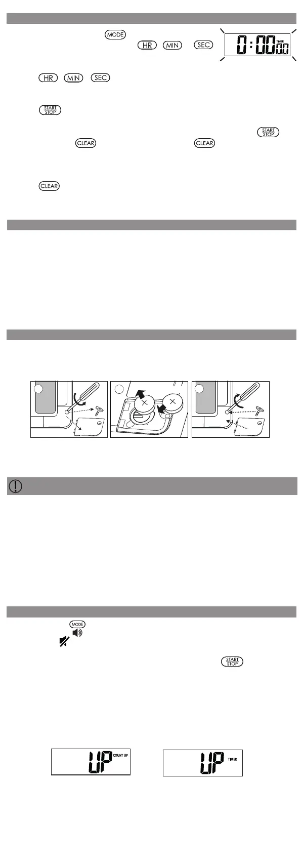 (Timer can count-up to a maximum of 23 hours, 59 minutes, 59 seconds).