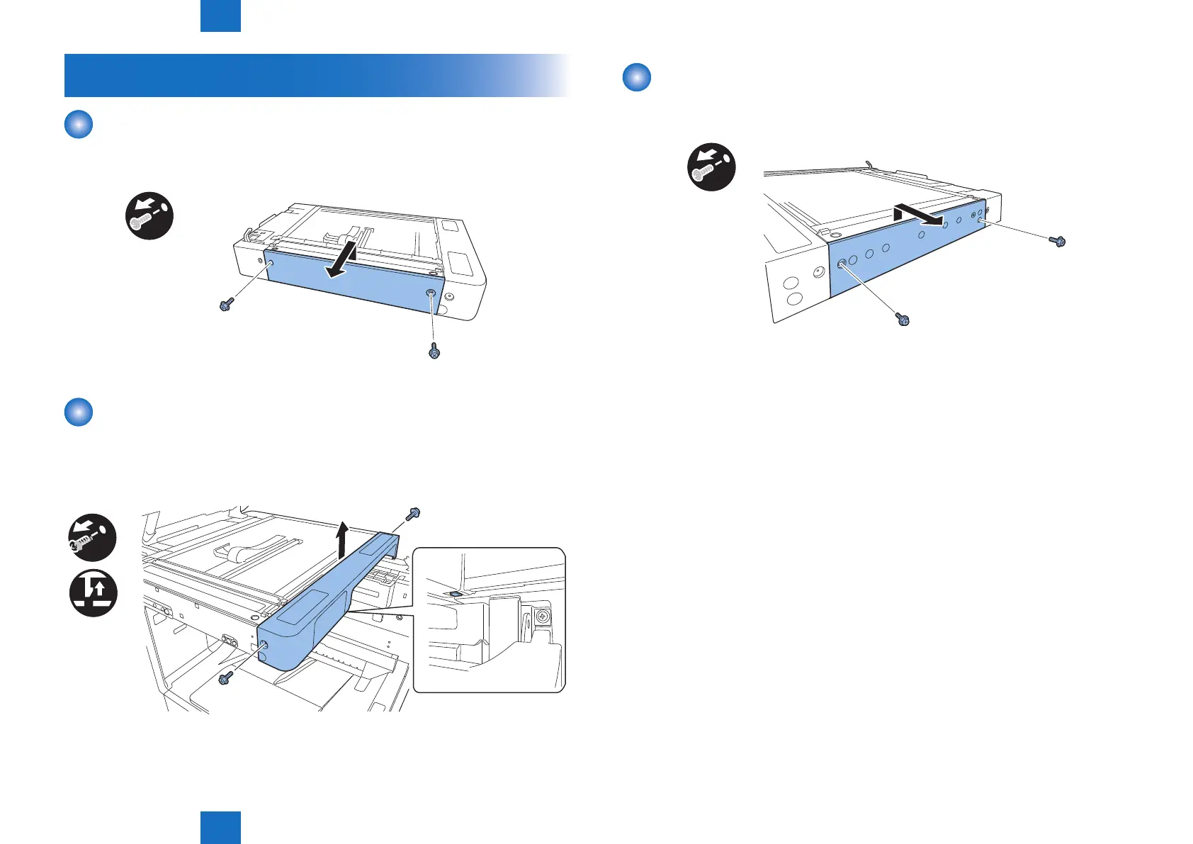 1) Remove the reader right cover by removing four screws, and then remove one screw from