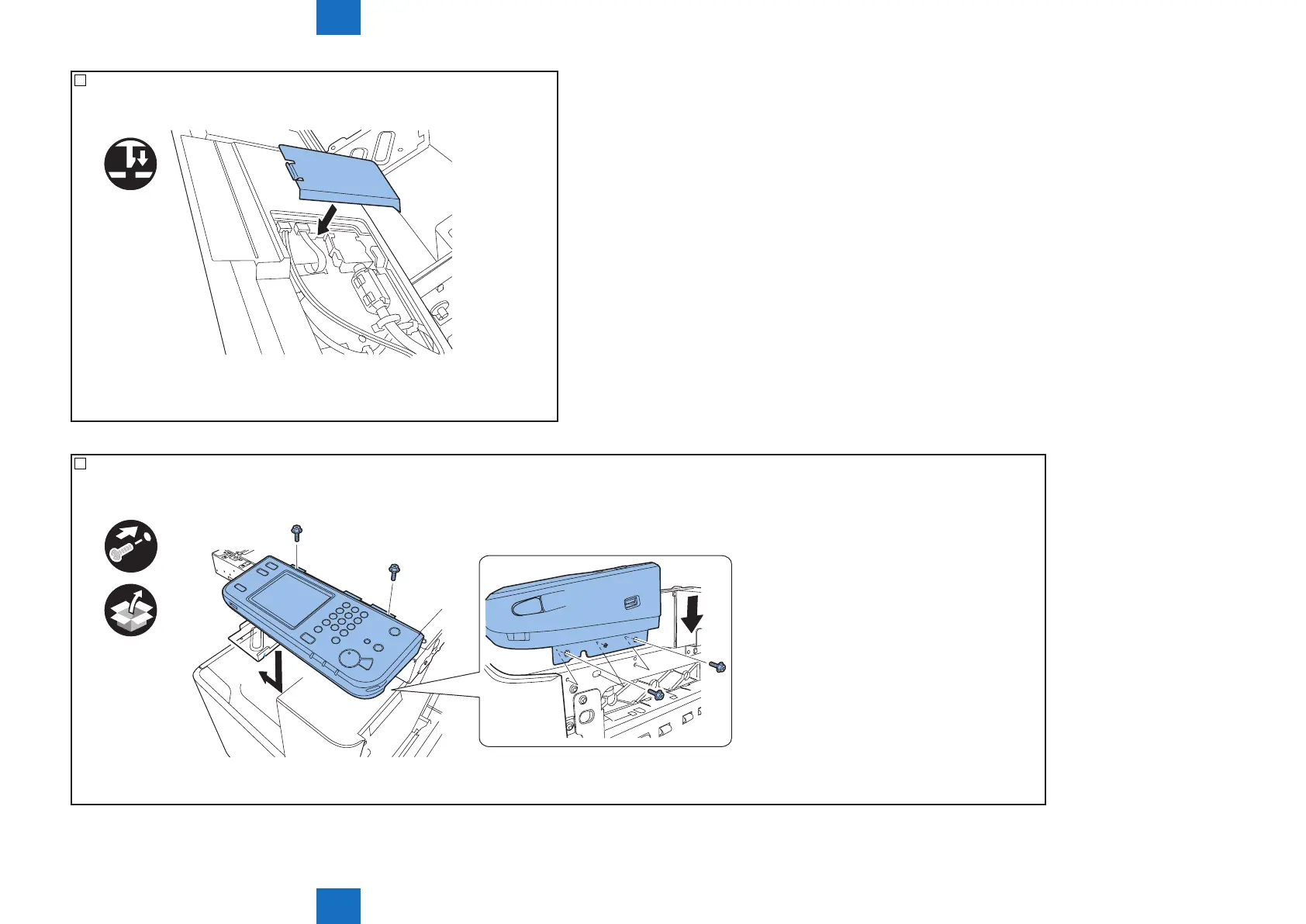 22) Attach the operation panel using 4 screws (TP, M4X6) included in the host machine.