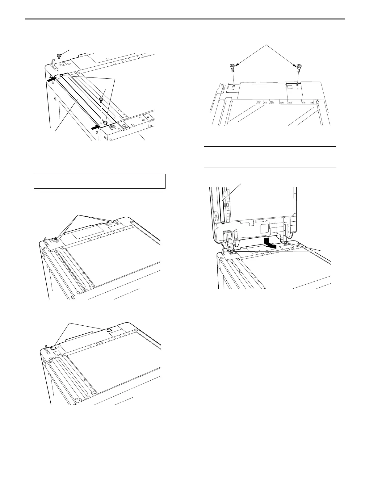 4) Engage the hinges of the DADF with the stepped screws [1] from behind