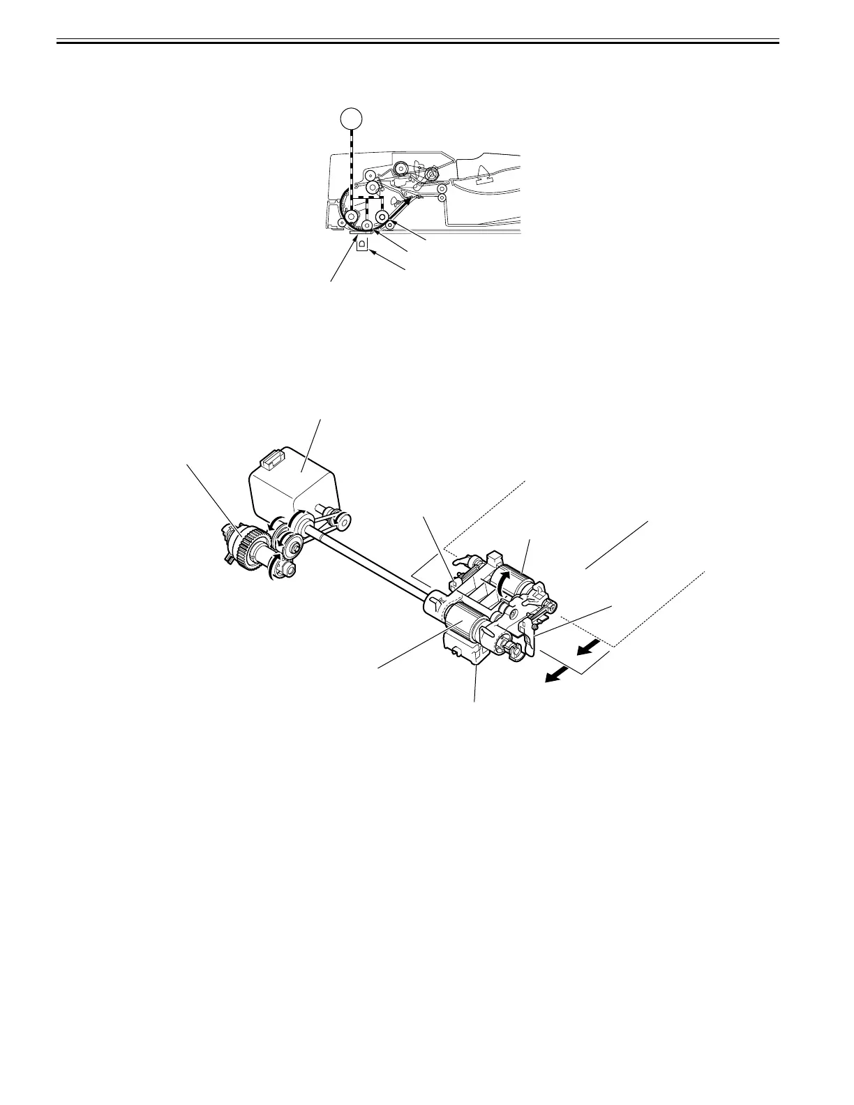 The pickup unit consists of a pickup roller and feed roller. When the print start key is pressed or a document pickup signal is input, the pickup/feed motor (M1)