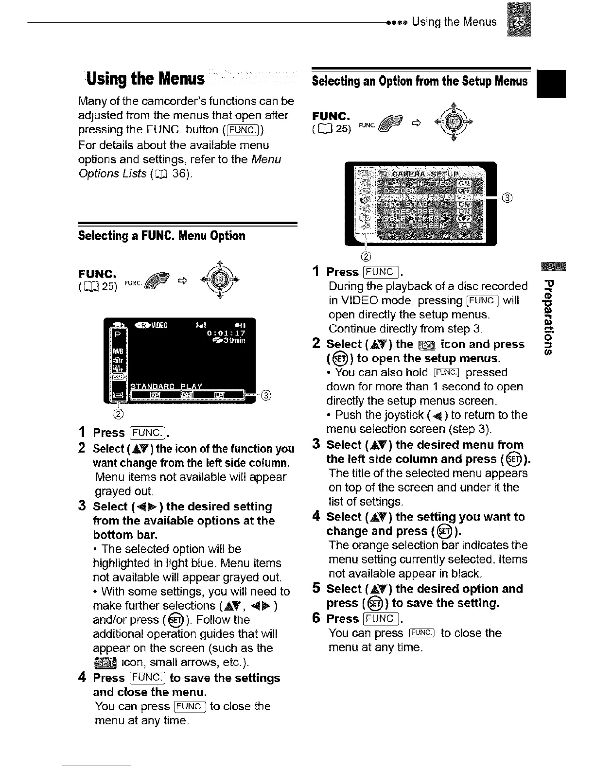 Selecting a FUNC. Menu Option