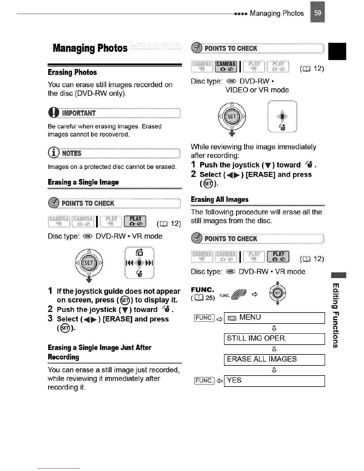 Be careful when erasing images. Erased