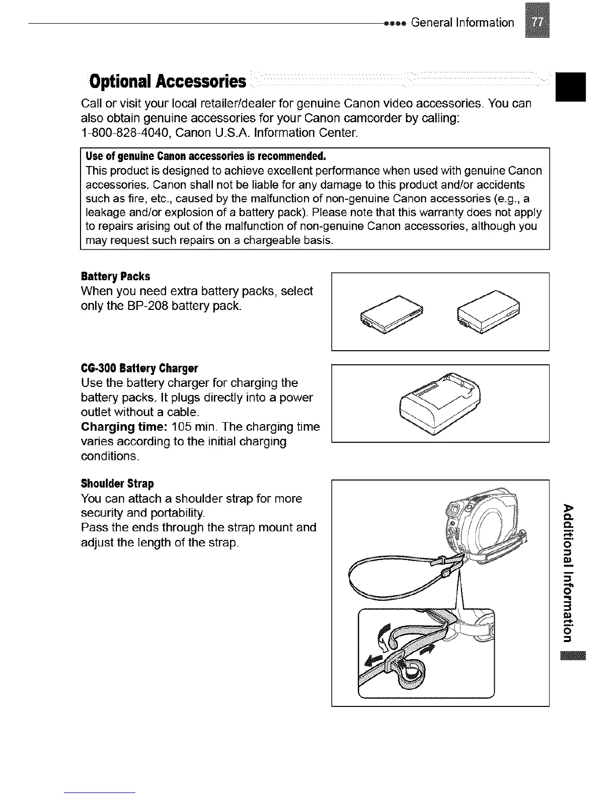 also obtain genuine accessories for your Canon camcorder by calling: