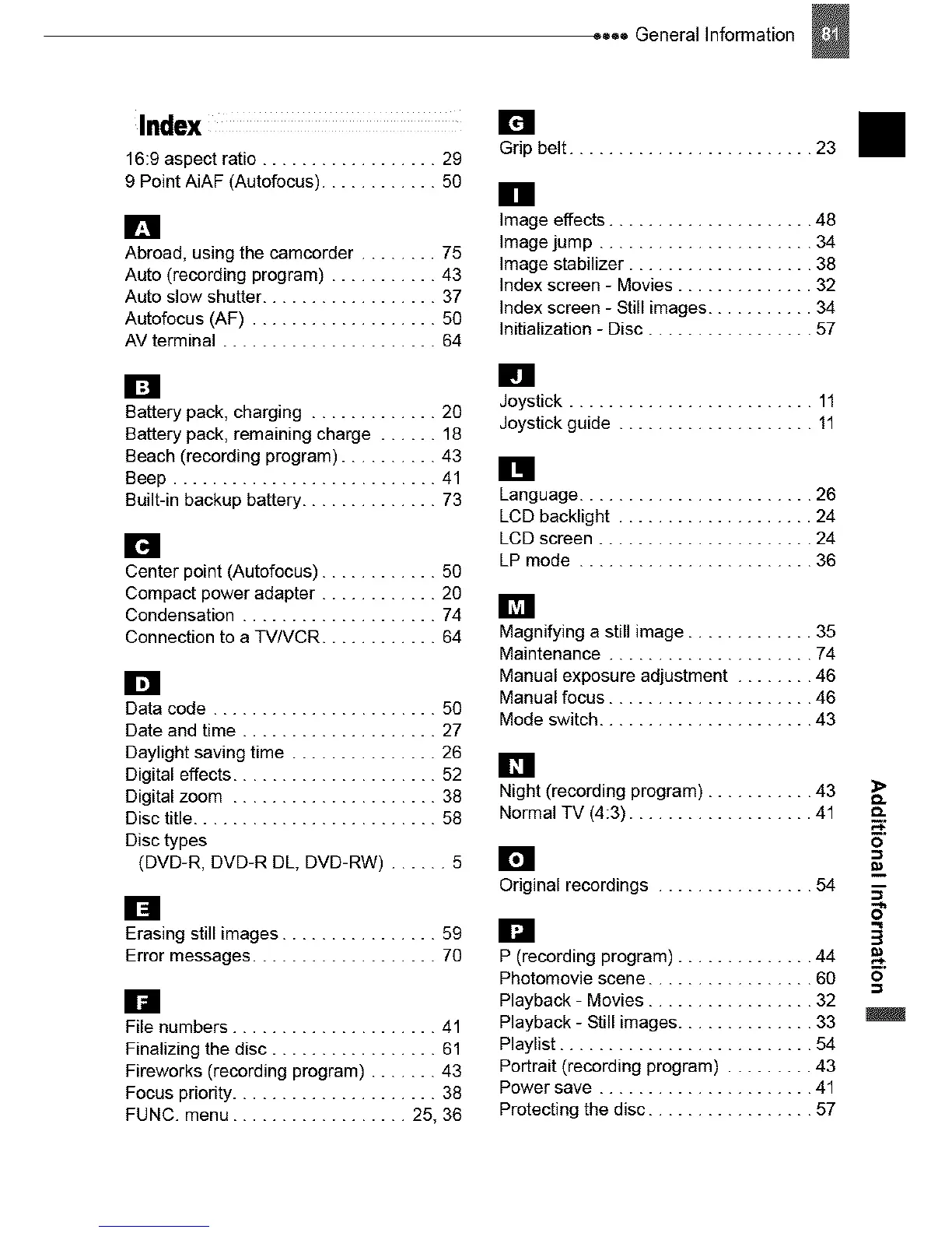 Abroad, using the camcorder ........ 75