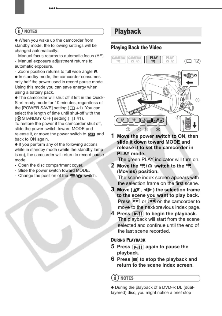 is on), the camcorder will return to record pause
