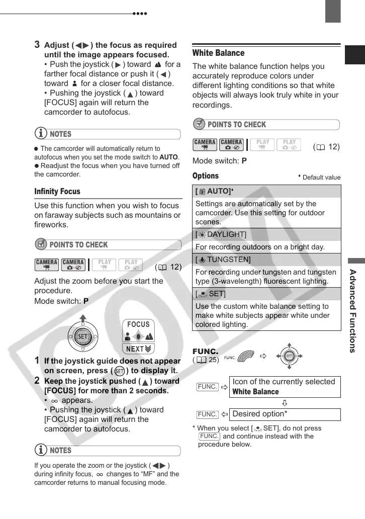 camcorder returns to manual focusing mode.