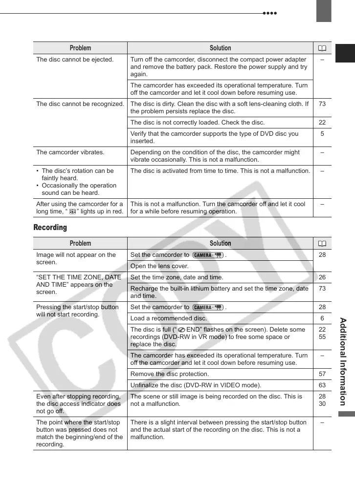 Unfinalize the disc (DVD-RW in VIDEO mode). 63