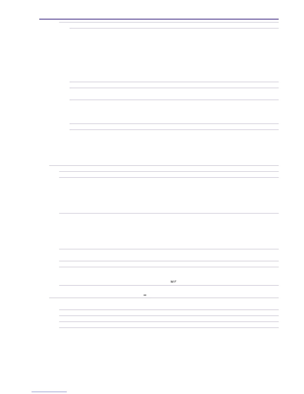 5-7-7 Forced infinity setting Holding down the focus button (cross key down) for about three seconds sets to Infinity and