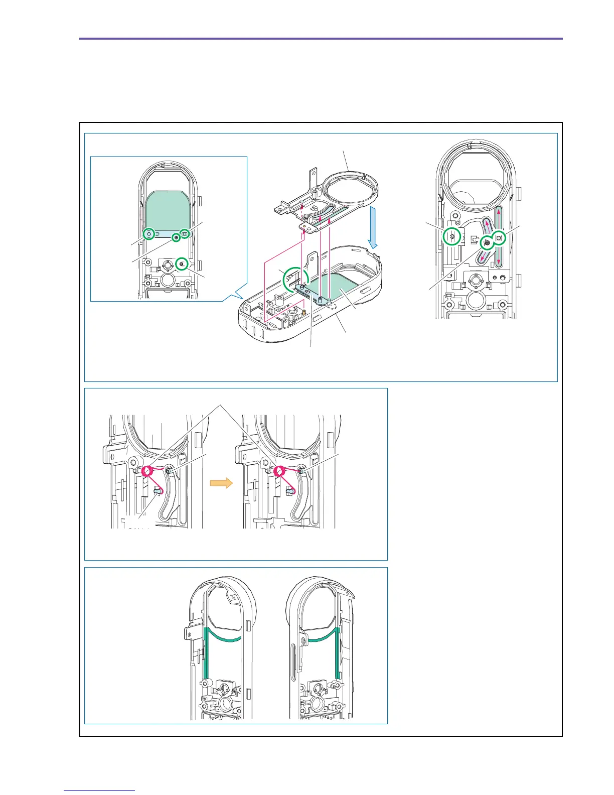 (1) Attach the Lens Barrier, Barrier Arm Ass'y, and Barrier Bottom Holder as shown in the figure below.