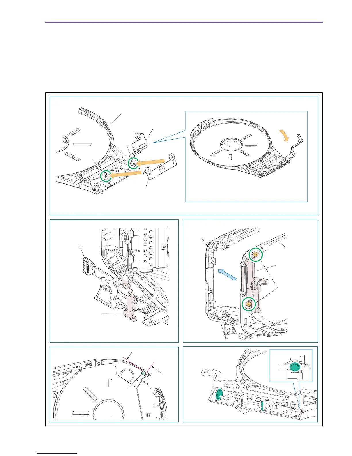 (4) Incorporate the Flash Ass'y into the LC Cover and mount it into the Left Cover. Be sure to fasten two screws of the Flash Ass'y first