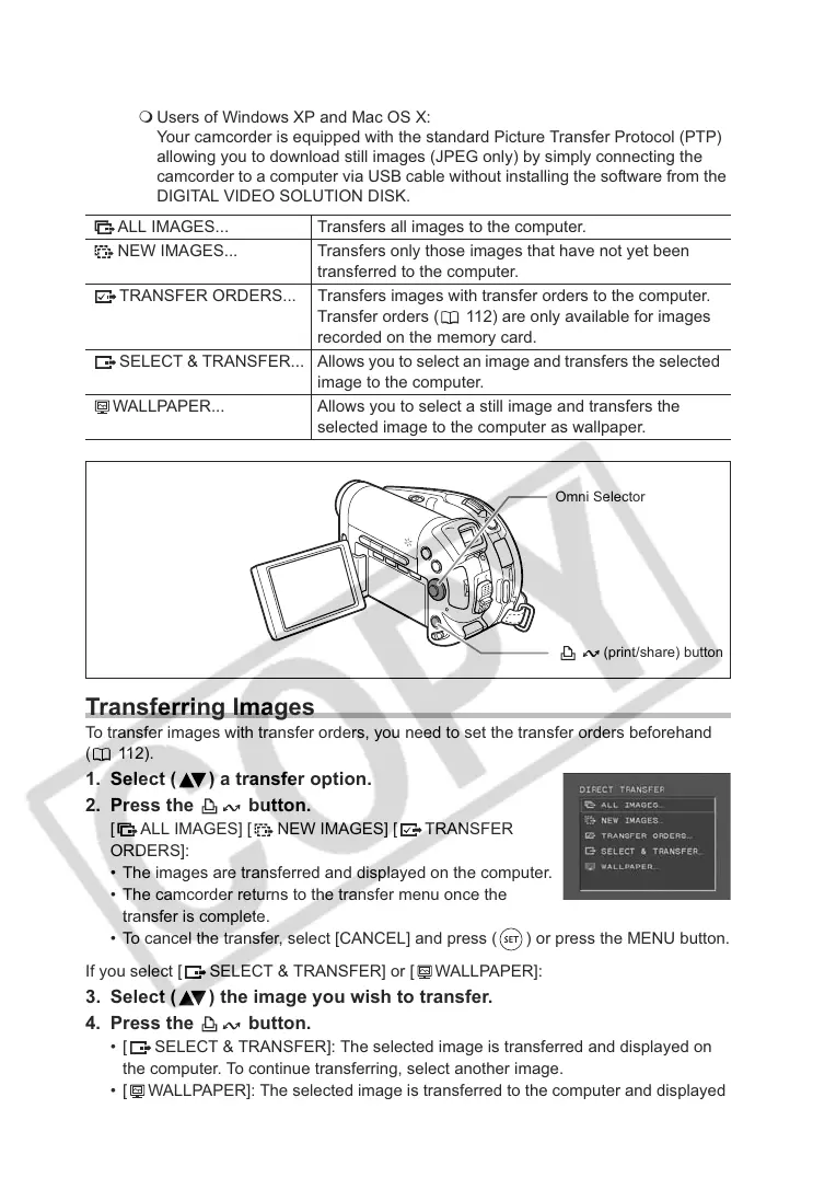 Your camcorder is equipped with the standard Picture Transfer Protocol (PTP)