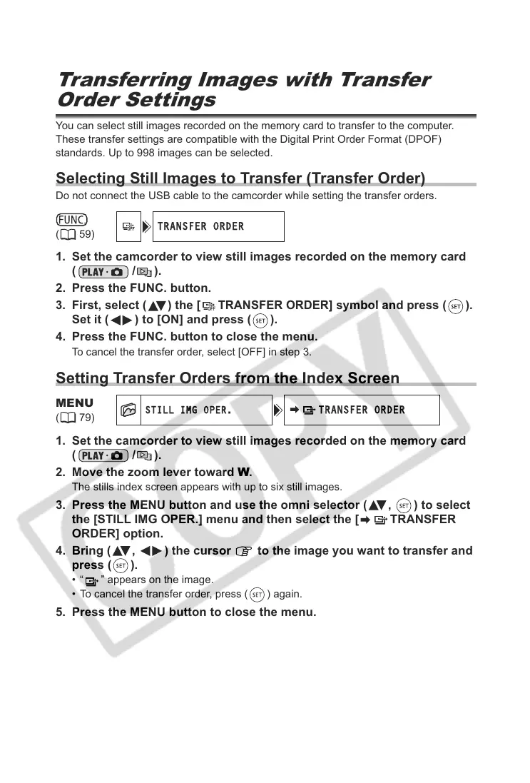 Selecting Still Images to Transfer (Transfer Order)