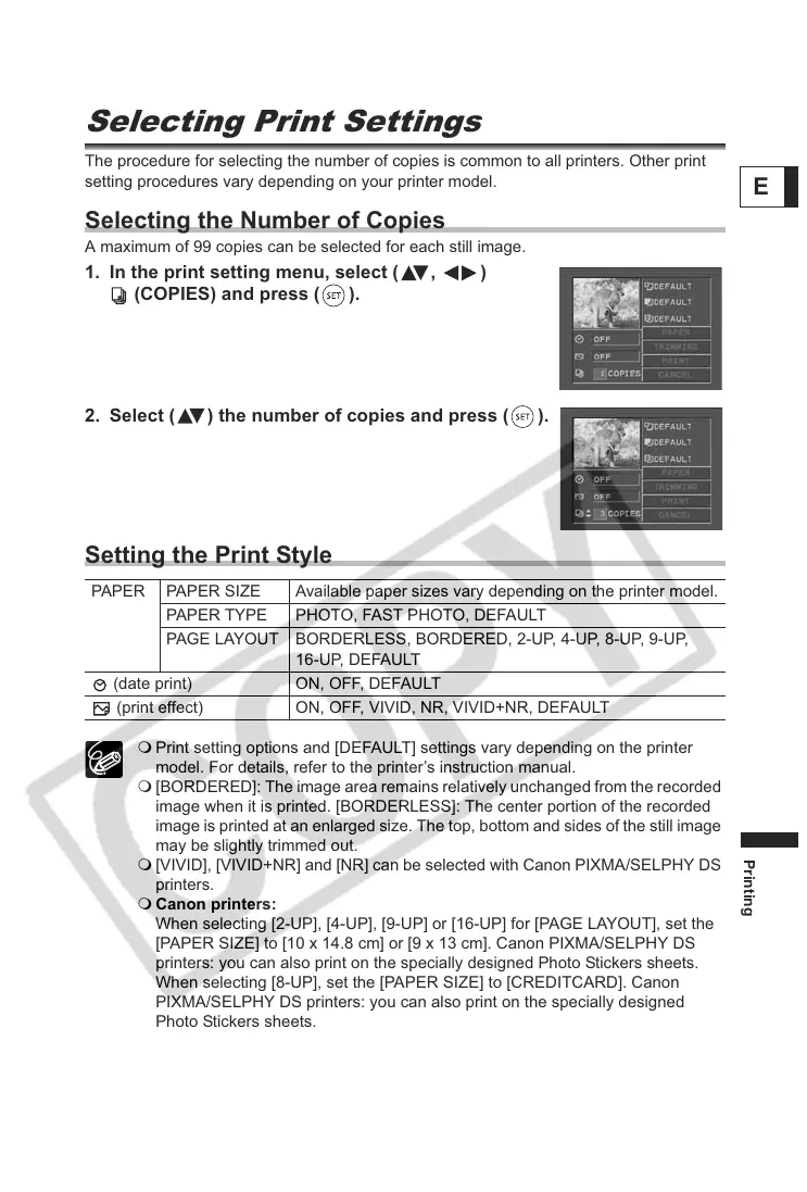 (print effect) ON, OFF, VIVID, NR, VIVID+NR, DEFAULT