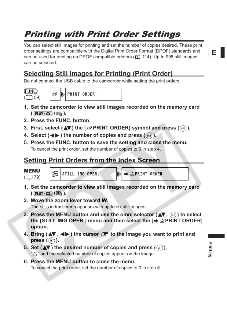 can be used for printing on DPOF compatible printers ( 114). Up to 998 still images