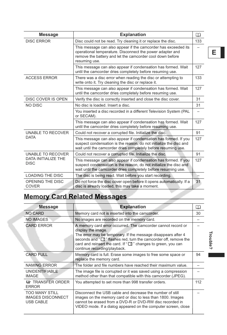 CARD ERROR A memory card error occurred. The camcorder cannot record or