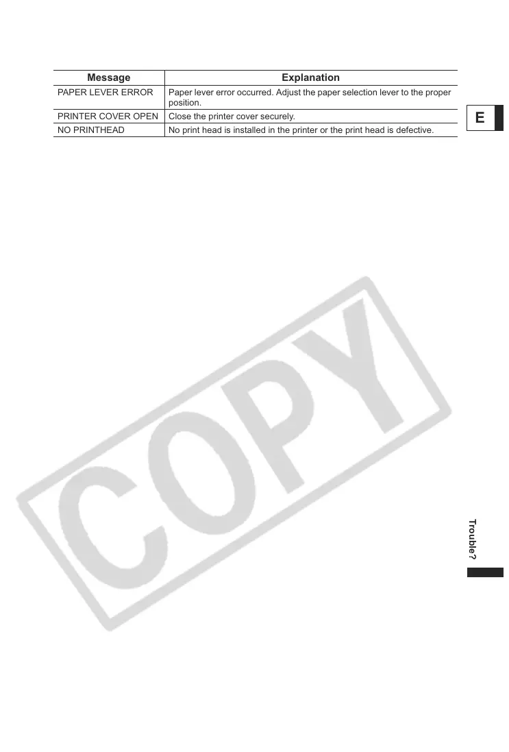 PAPER LEVER ERROR Paper lever error occurred. Adjust the paper selection lever to the proper