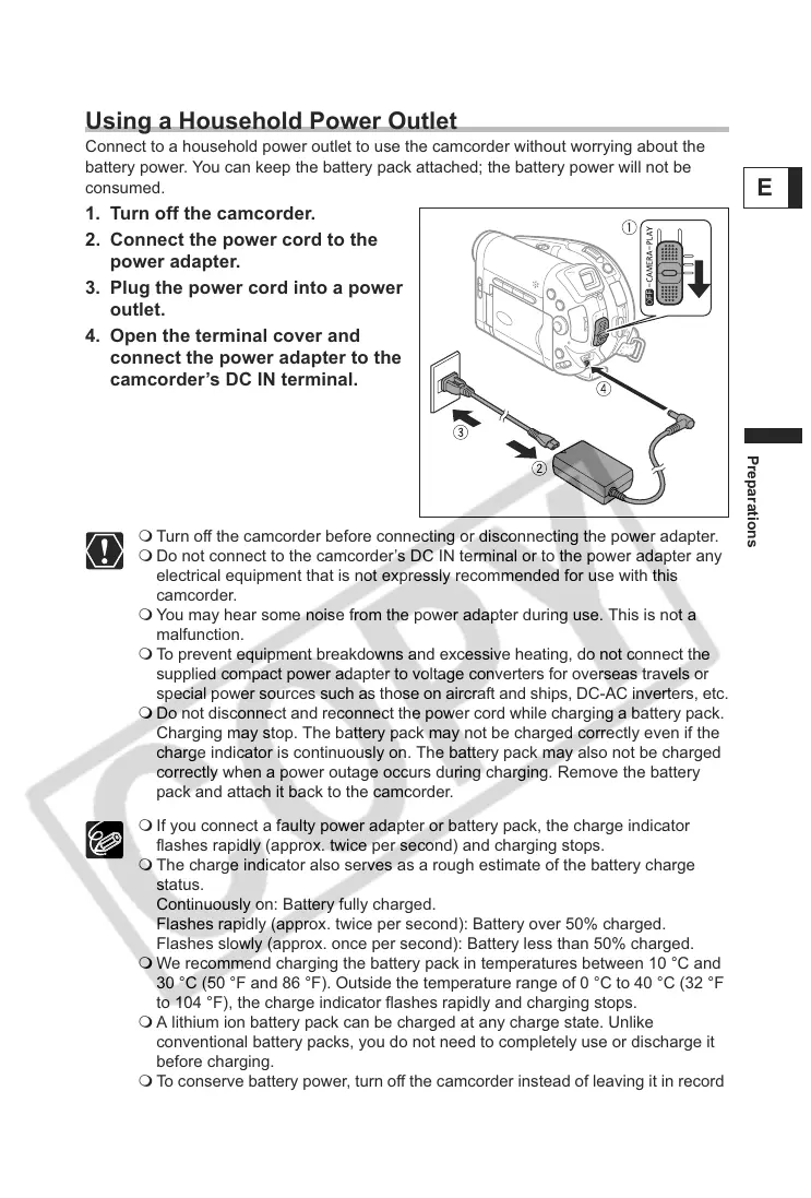 Turn off the camcorder before connecting or disconnecting the power adapter.