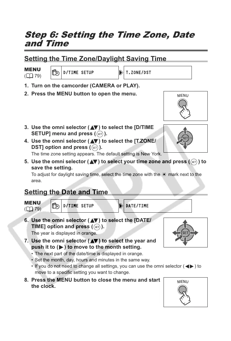 5. Use the omni selector ( ) to select your time zone and press ( ) to