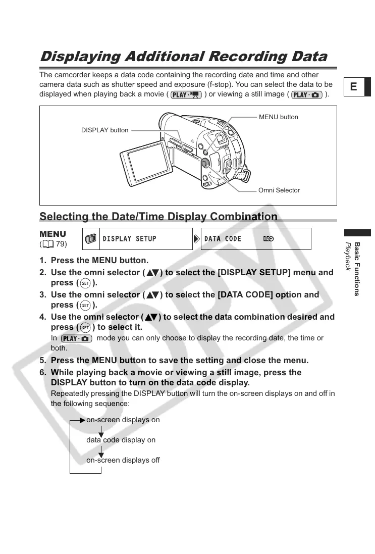 DISPLAY button to turn on the data code display.