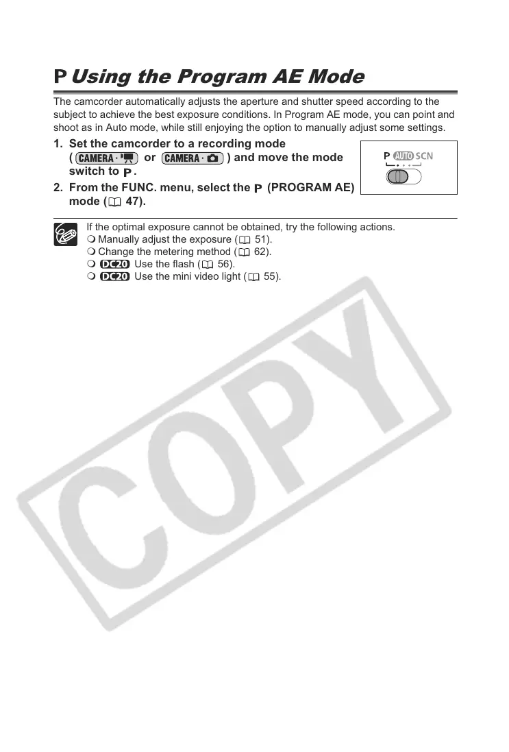 subject to achieve the best exposure conditions. In Program AE mode, you can point and