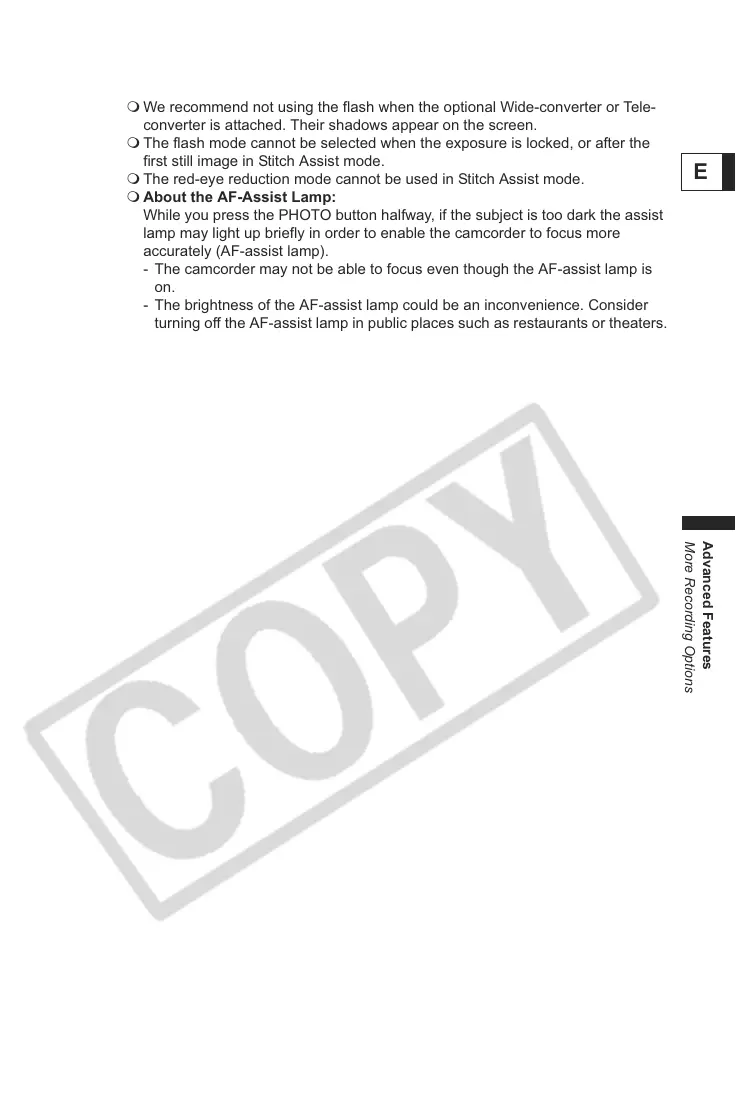 We recommend not using the flash when the optional Wide-converter or Tele-