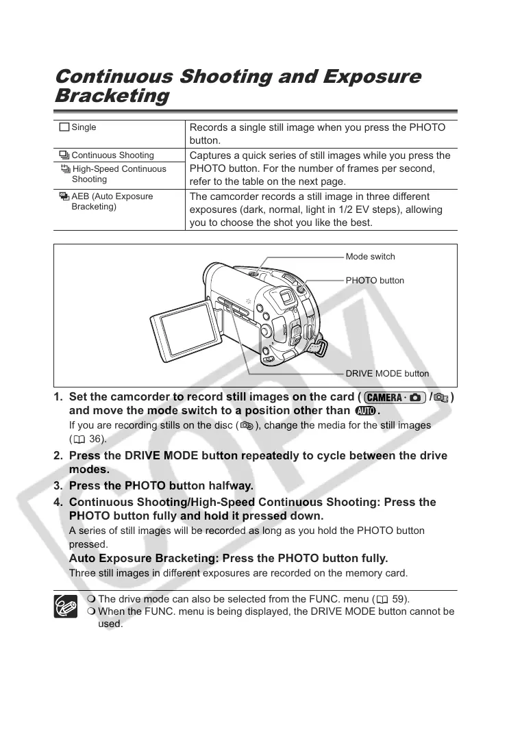 Auto Exposure Bracketing: Press the PHOTO button fully.