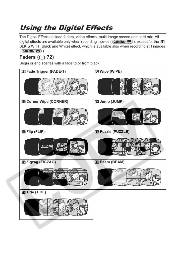 digital effects are available only when recording movies ( ), except for the