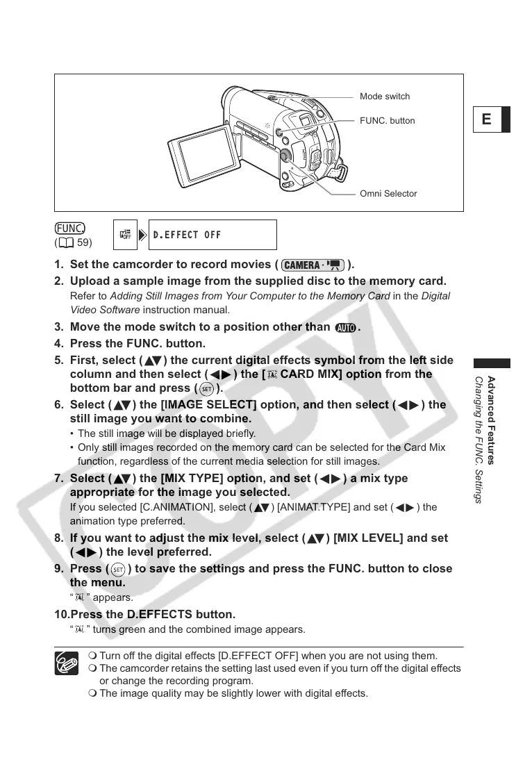 The camcorder retains the setting last used even if you turn off the digital effects