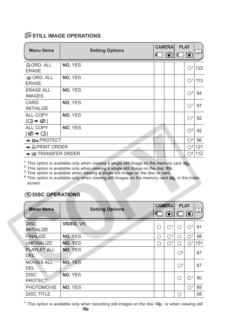 This option is available only when recording still images on the disc , or when viewing still