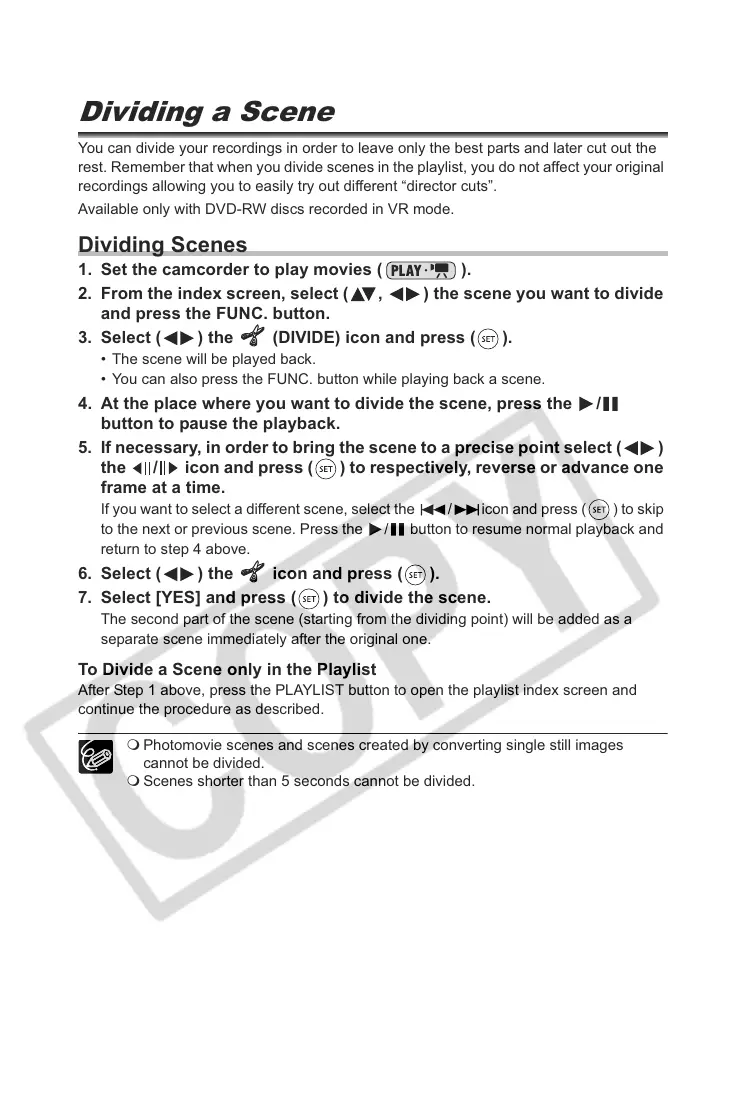 rest. Remember that when you divide scenes in the playlist, you do not affect your original