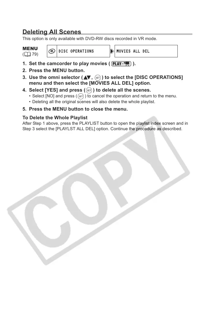 Step 3 select the [PLAYLST ALL DEL] option. Continue the procedure as described.