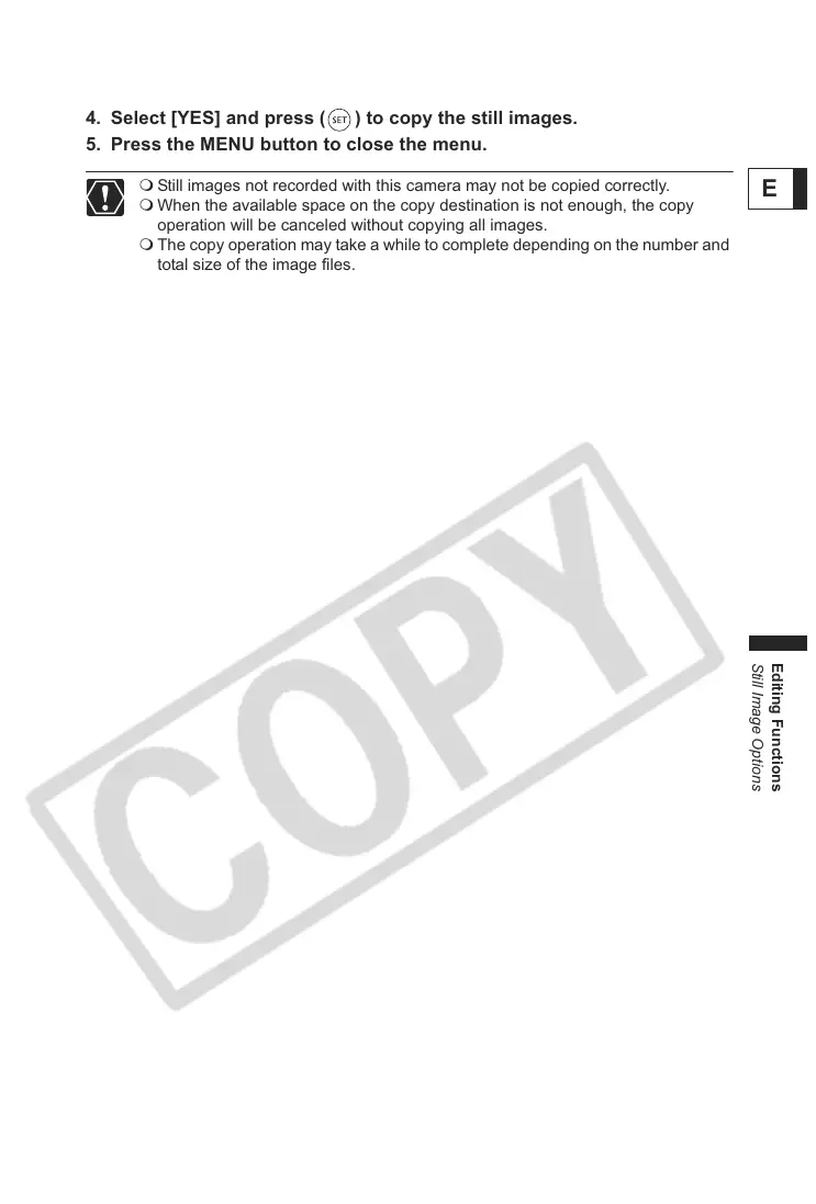 4. Select [YES] and press ( ) to copy the still images.