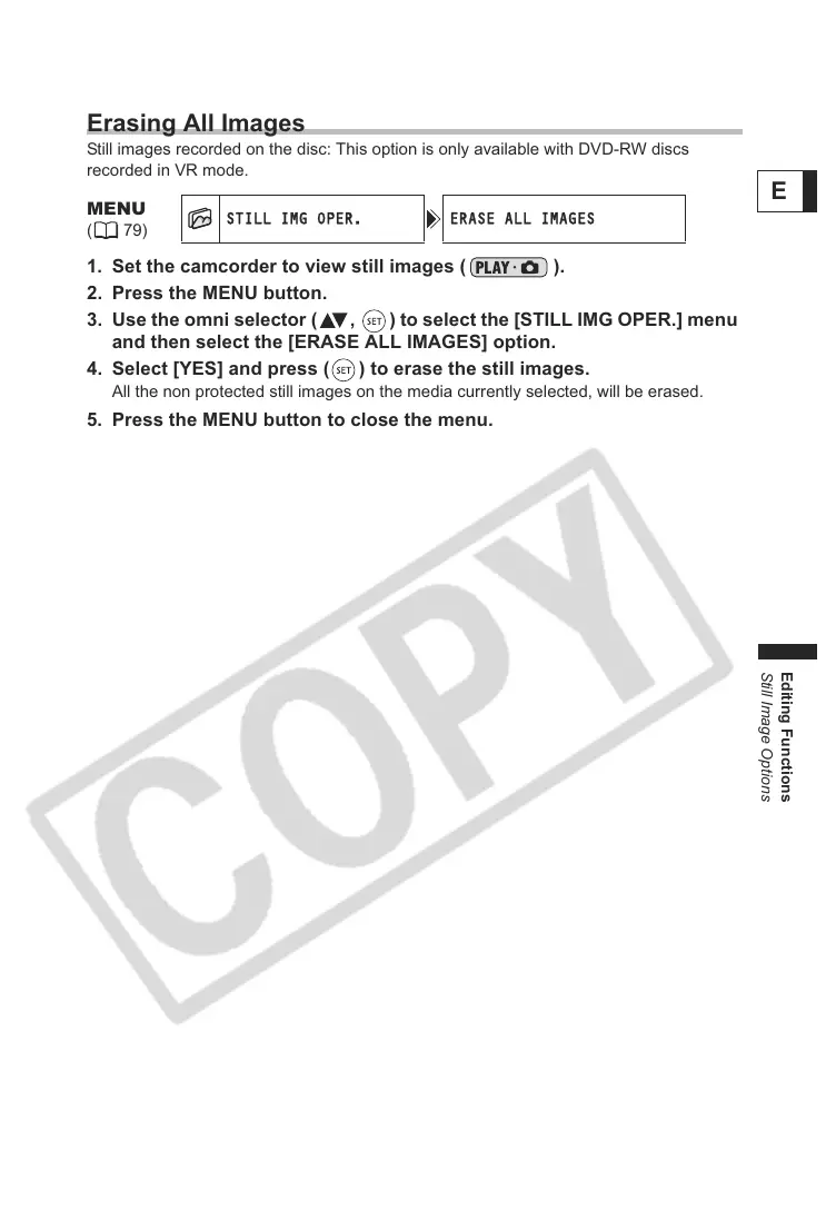 Still images recorded on the disc: This option is only available with DVD-RW discs